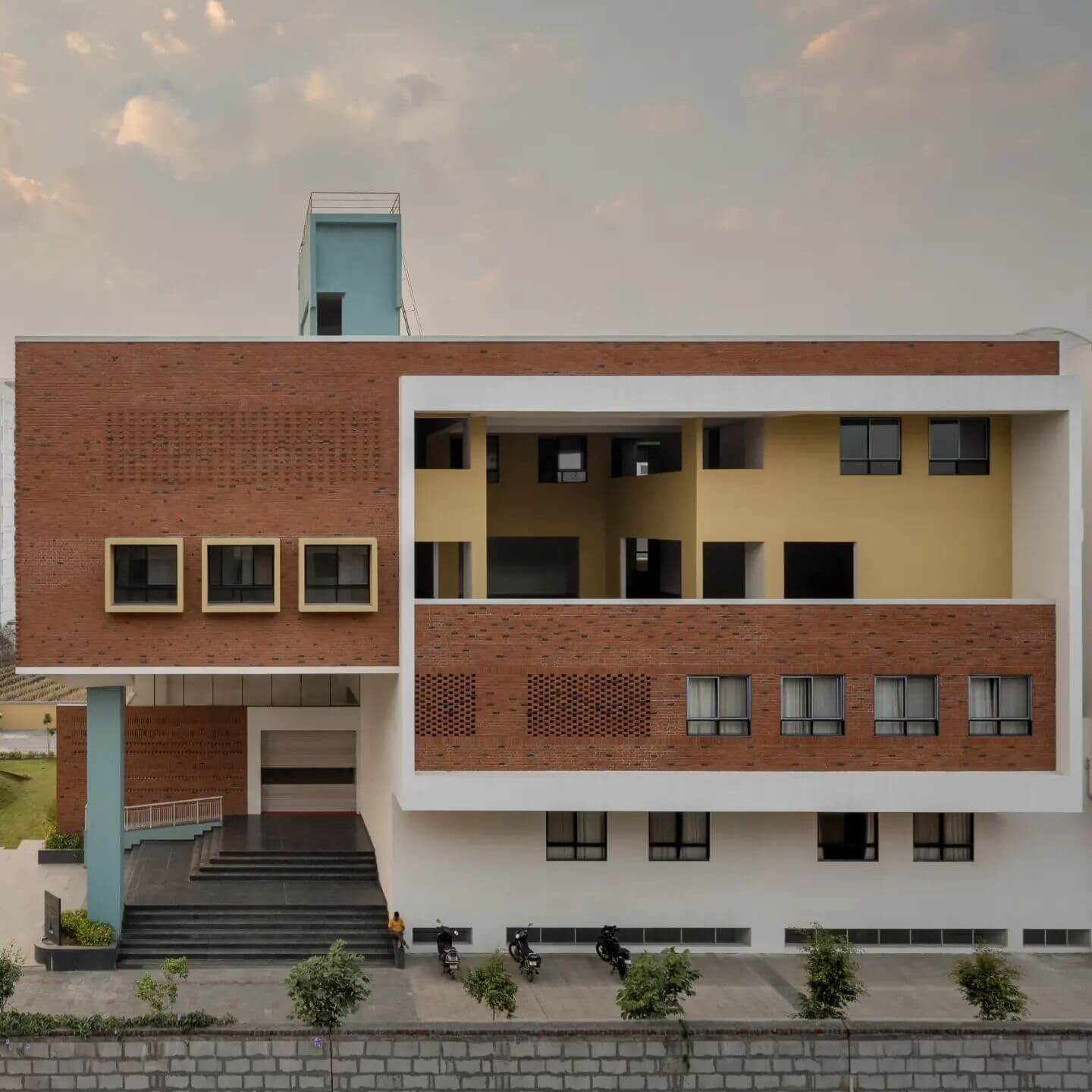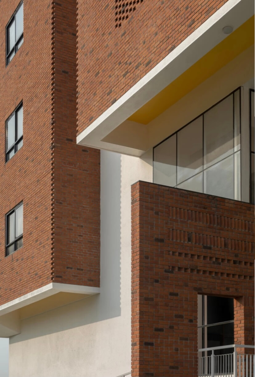 The project was presented by Manik Estate and developed under the leadership of Ar. Jinesh Dhumawat from Arcon Associates. Its modern architecture stands out with the rustic charm of RKB’s exposed bricks.