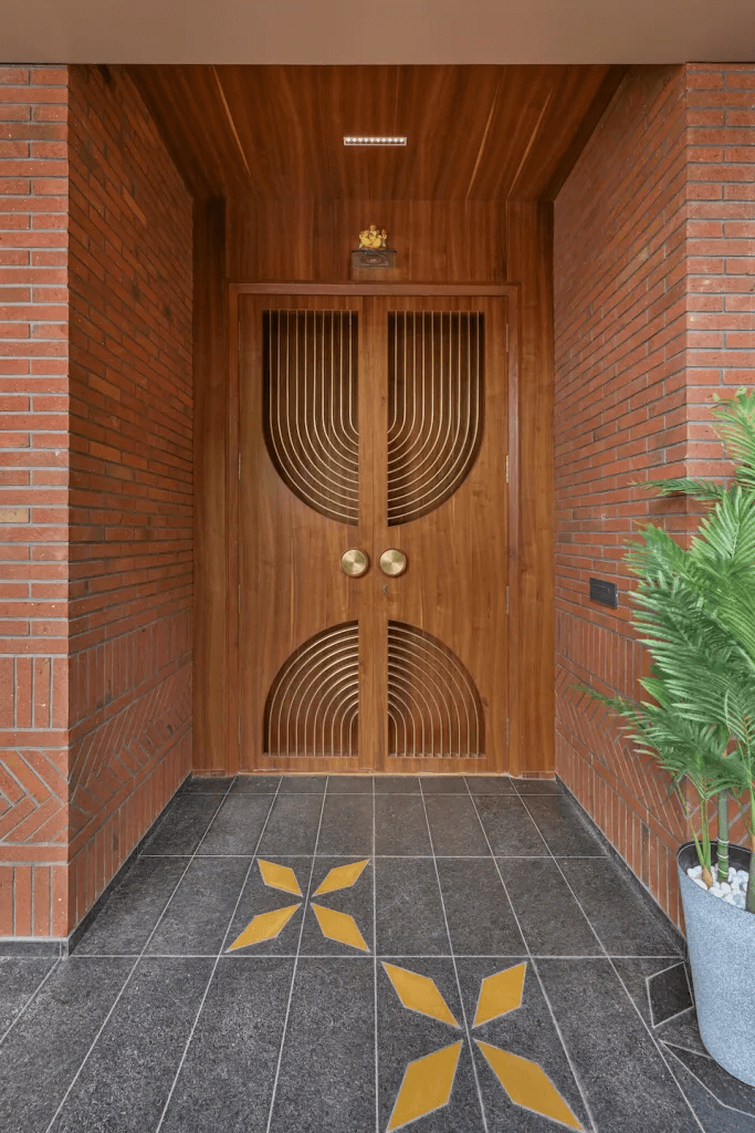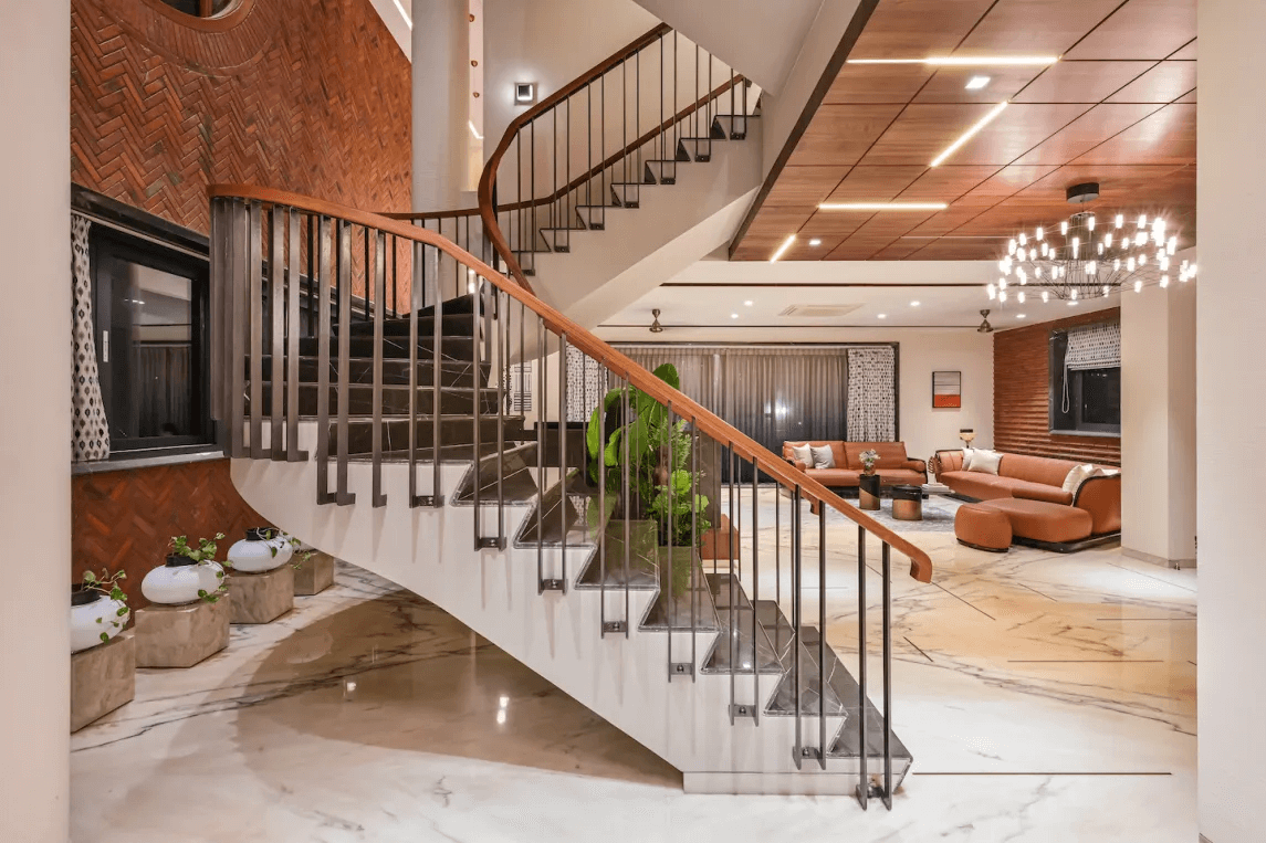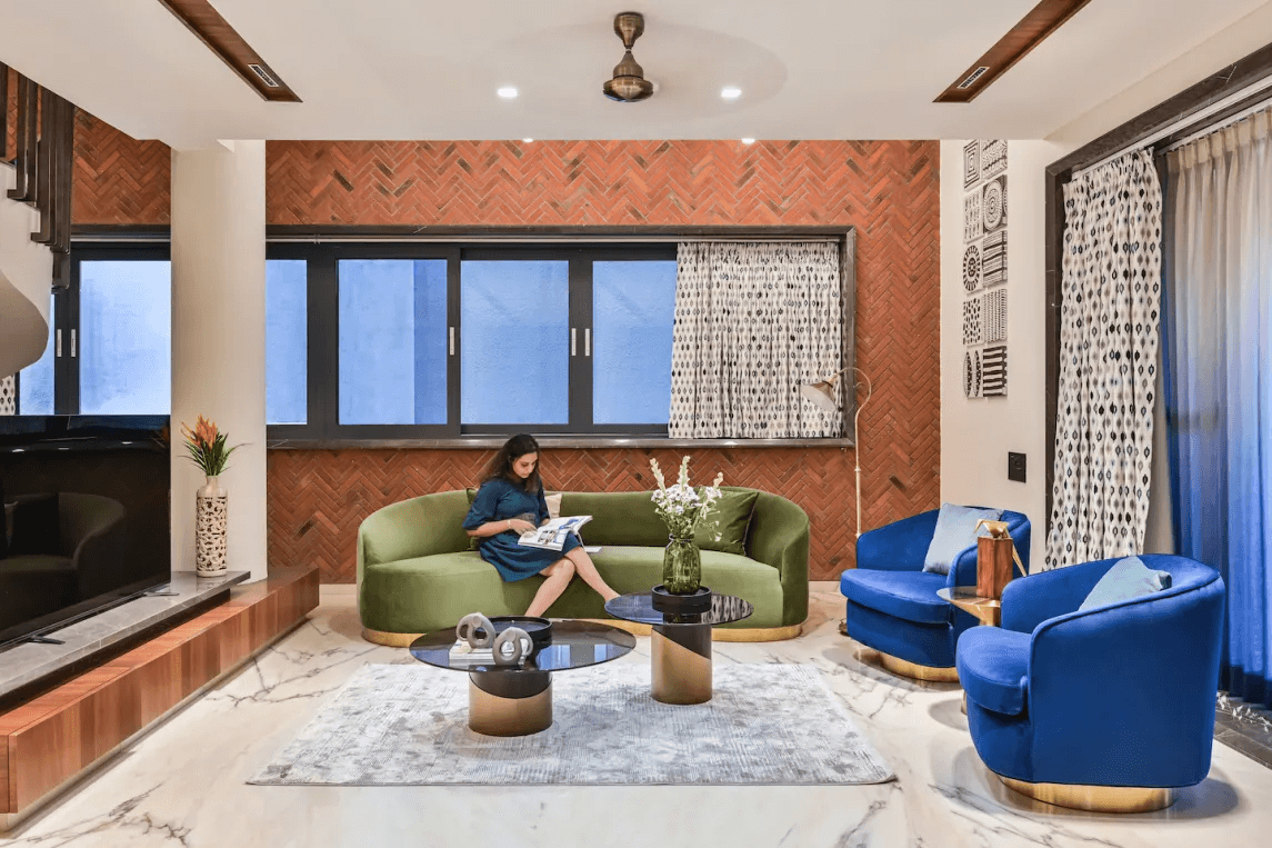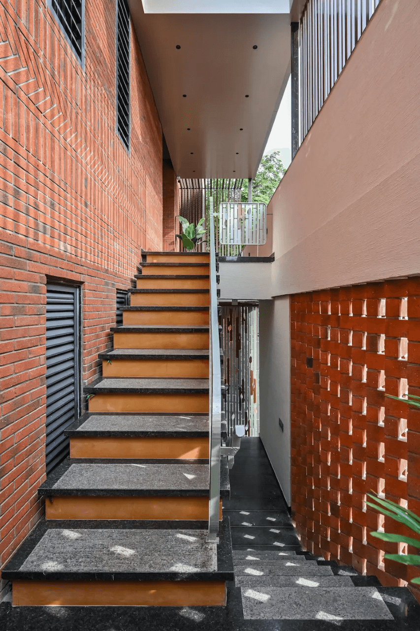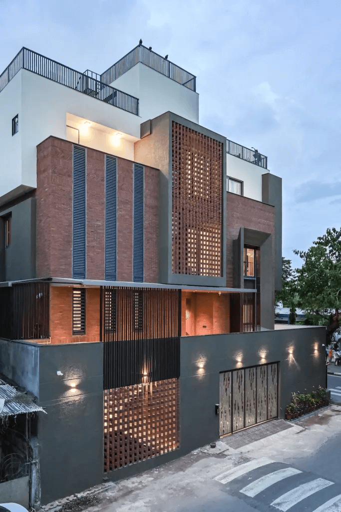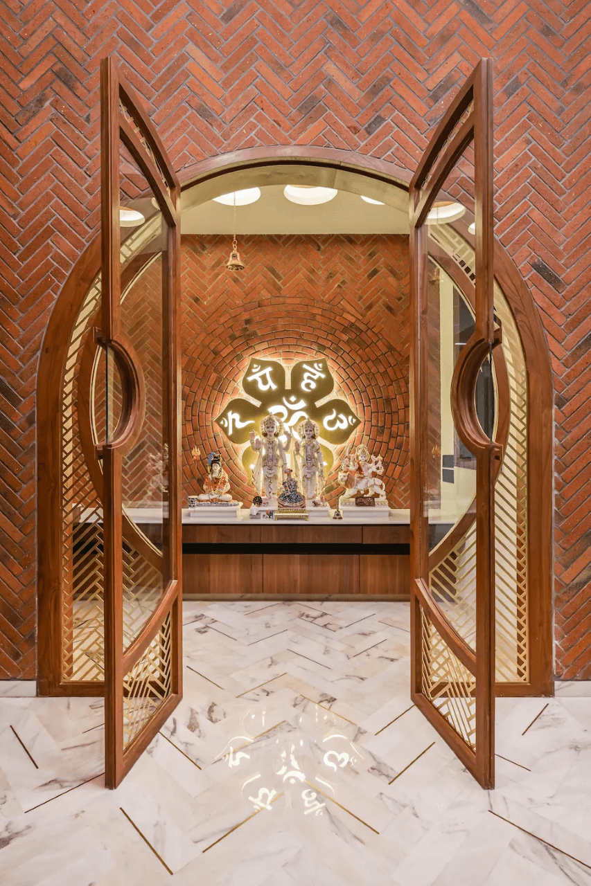 The true beauty lies behind the facade and the notable interior earthy wall features of the Skewed Brick Home speaks it aloud. Designed by Mallika and Abhishek Dhabuwala from Hundred Designs, this 10,900 sq ft residence goes beyond a single aesthetic.